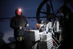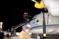 У далеку дорогу нашого «полярника» випроваджає шаман, тому на ніжинському аеродромі МНС на три дні виросли чуми з муляжами оленів, було розведене вогнище з ритуальними танцями справжнього шамана. Далі знімали борт спеціалізованого літака аерофотозйомки АН-30.