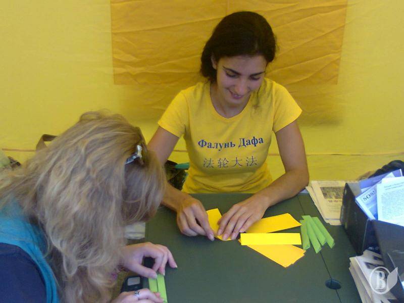 «Вперше у Чернігові акція «Пелюстки миру», де виготовляються паперові квітки лотоса, а також демонструються вправи східної практики самовдосконалення Фалунь Дафа. Ця акція направлена на заохочення українців вести здоровий спосіб життя та на заклик людей до доброти та милосердя.