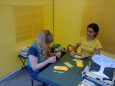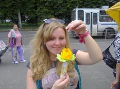 Мами з дітьми підходять навчитися робити квіти, хтось спостерігає і сміється. Але ж на фоні політики і бруду – чим вам не відпочинок.