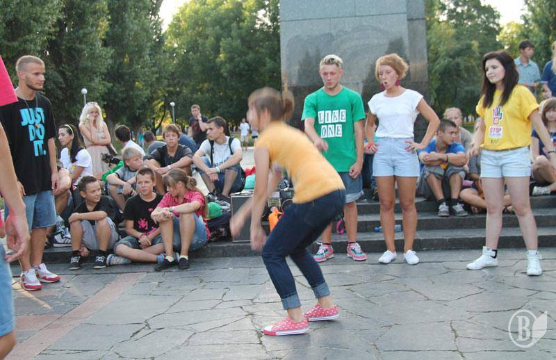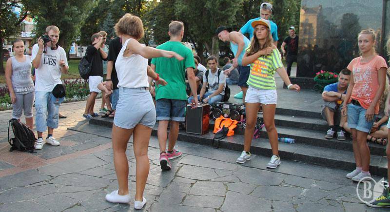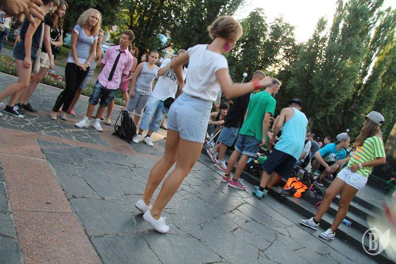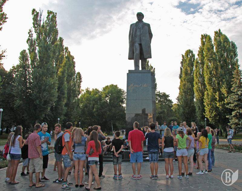 У той час, коли старші чернігівці, тусувалися на „Зеленій сцені” за 500 метрів вгорі проспекту миру, за площею, молодь зігрівалася активним танцем біля пам’ятника вождю світового пролетаріату.