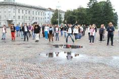 Илья, Андрей и Сергей (ведучі шоу) вместе со всеми, кто пришел на площадь, устроили танцы. "Ну и что, дождь - не помеха танцам!", - говорили они. Черниговские ребята зарядили энергией всю съемочную группу) А мы едем дальше - через час встречаемся около Екатерининской церкви, - сказано у ще одиному пості з Фейсбуку.