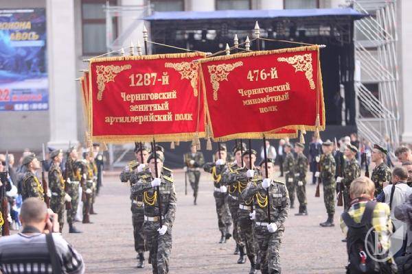 Після покладання відбулася урочиста церемонія виносу історичного Прапору Перемоги, піднятого на Красній площі 21 вересня 1943 року та урочисте проходження військових частин Чернігівського гарнізону.