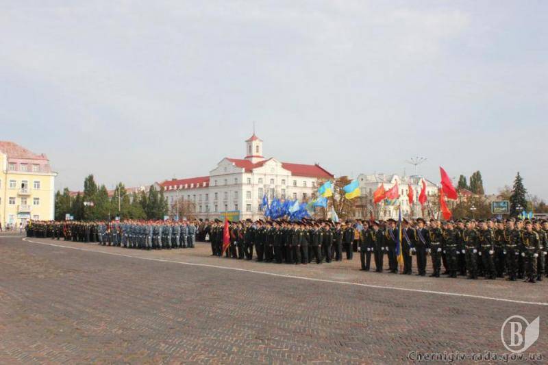 Стройовий вишкіл на урочистому проходженні продемонстрували офіцери територіального управління "Північ", воїни-прикордонники 105-го Ризького орденів Червоного Прапора та Червоної Зірки прикордонного загону, підрозділ міліції особливого призначення «Беркут», військовослужбовці Восьмого навчального центру Державної спеціальної служби транспорту Міністерства інфраструктури України, курсанти юридичного коледжу пенітенціарної служби України. Завершили урочисте проходження військ гарнізону наймолодші його учасники – вихованці Чернігівського ліцею з посиленою військово-фізичною підготовкою.