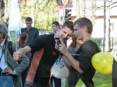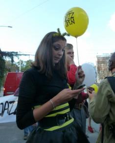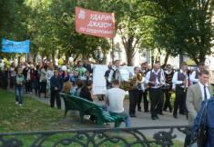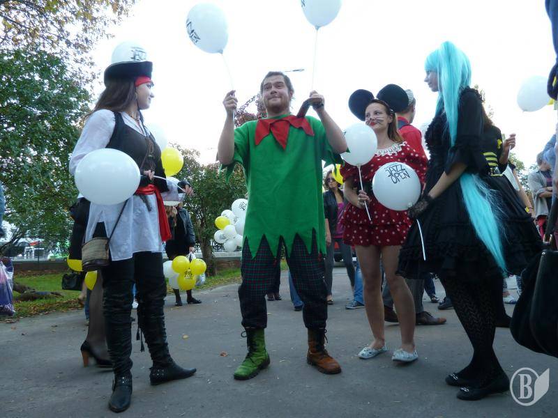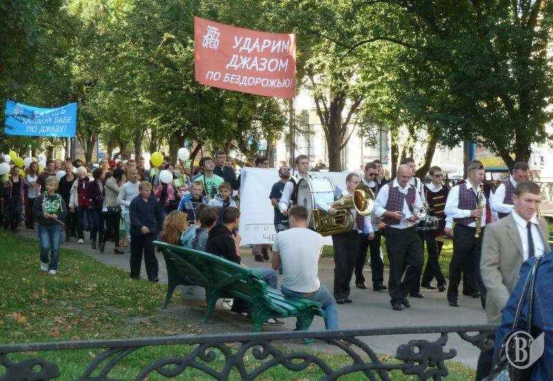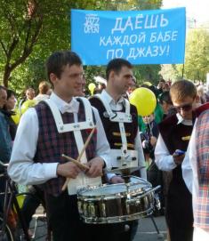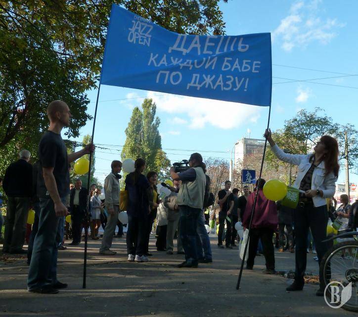 Над учасниками променаду під супровід духового оркестру Збройних сил майоріли транспаранти "Ударим джазом по бездорожью" і "Каждой бабе по джазу!".