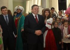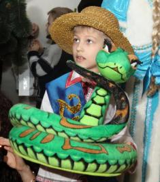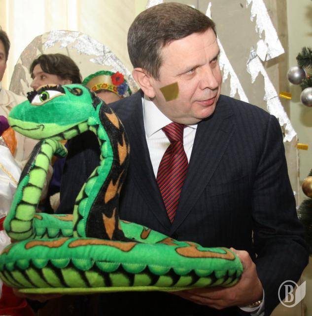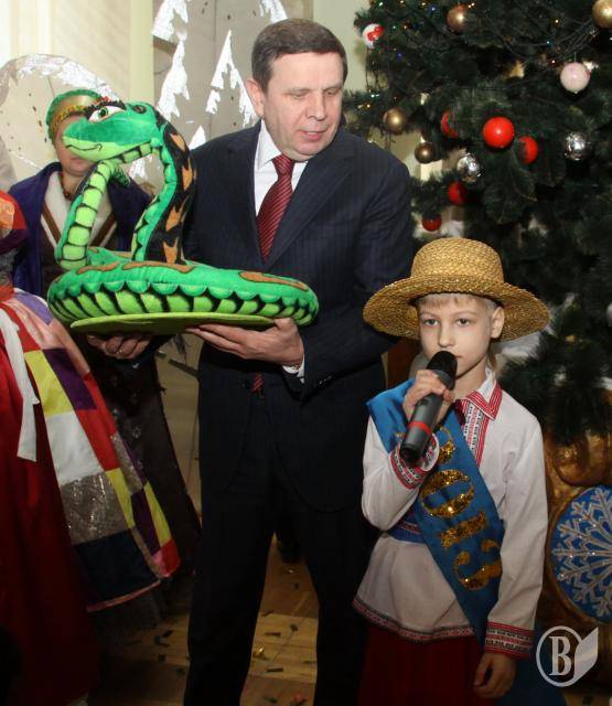 Після привітань хлопчику, що символізував Новий рік, очільник облдержадміністрації вручив подарунок - зелену змію: