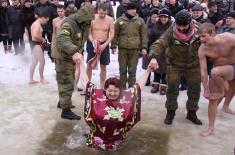 Святкування Хрещення Господнього у Чернігові розпочалось зі служби в храмах, після чого громадськість міста, козаки і представники громадської організації "Ніхто крім нас" зібралися біля ополонки на центральному пляжі "Золотий берег".