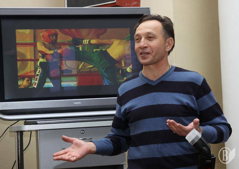 Під час презентації виставки одну з таких картин майстер і отримав від своїх художників-шанувальників в якості подарунка (див. фото).