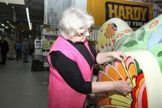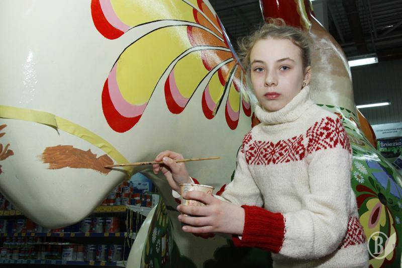 Учні художньої школи минулого четверга допомагали майстрині Таїсії Атаманюк розписувати чернігівського «Диво-птаха».