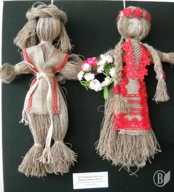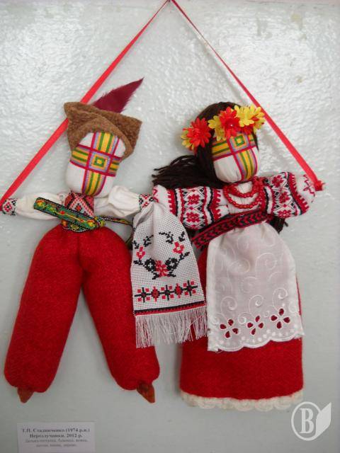 В ті далекі часи таку ляльку робили, аби привернути щастя, кохання та добру долю. Вона сприяла вдалому шлюбу та материнству, оберігала від злих духів, захищала малюків від порчі, приносила спокій і здоров’я. Цікаво, що робити таку ляльку без застосування колючих і ріжучих предметів, аби не завдати шкоди людині. На нашій землі цю давню традицію бережуть і поширюють майстрині Тетяна Стадниченко та Ольга Костюченко – члени Національної спілки майстрів, Лариса Ганненко, Олександра Дідович. В експозиції представлені ляльки-мотанки вже й їхніх учнів, послідовників.