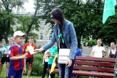 На Алеї Героїв найменші і найстарші учасники пробігу, а також щасливчики із числа зареєстрованих учасників отримали призи від ресторану "Чікен Хат".