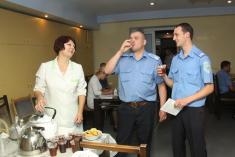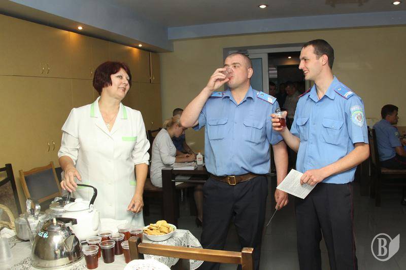 Жінки в погонах також не стояли осторонь, вони нарівні з чоловіками теж активно брали участь у цій благодійній акції. Традиційно прийшла внести свою «краплину крові» начальник управління інформаційно-аналітичного забезпечення УМВС Валентина Акуленко. Ця на вигляд досить тендітна пані завжди здає кров на рівні з чоловіками. В черзі, яка вишикувалась біля входу до залу, в якому проходив захід, серед чоловіків, можна було побачити і дівчат.