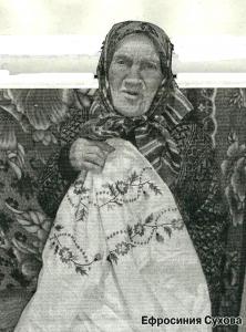 Найулюбленіше заняття бабусі Фросини - вишивання. «Бувало, піч топлю, дрова підкидаю і вишиваю, тому що просто сидіти за рукоділлям колись, а дуже хочеться, - каже вона, - хіба що довгими зимовими ночами з каганцем на печі був час. Мені ті візерунки, що вишивала, і до сих пір бачаться. А ще дуже ткати любила на верстаті. Як до Марії переїхала, так поставили в хліві верстат. Мені вже за 80 було, коли внук Юра одружився. Я йому наткала ряднини на весь новий великий будинок. Дарма, що їх вже на куплені змінили, мені така була радість зробити онукові подарунок. І на смерть собі я все вишите приготувала. Воно мені дорого, з чим жила, з тим і на той світ піти хочу, як прийде час».
