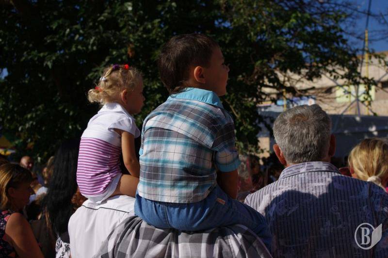 А ще малеча не притягнула на лінійку віників. Діти прийшли без квітів, букети з яких ховають за собою чернігівських малюків.
