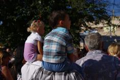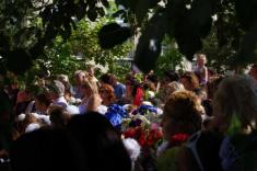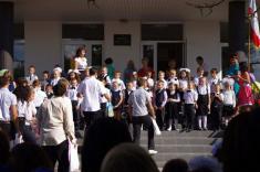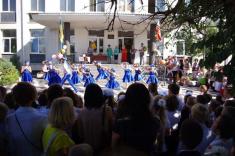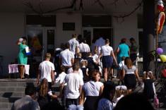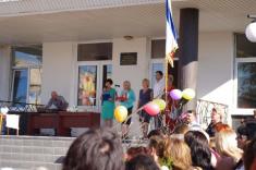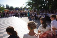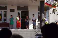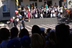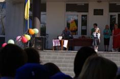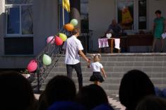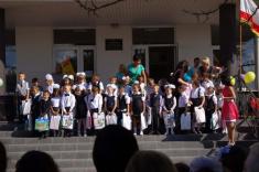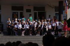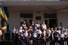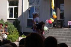 Перший дзвоник пролунав за доброю традицією від першокласниці, яку ніс на своєму мужньому плечі випускник. Символ свята весь час урочисто стояв на вишитому рушнику, одягнений у білий бант.