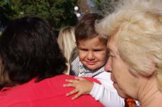 У школу малечу за руку провели їх старші товариші. У добрий путь, як то кажуть. Гарна традиція, у Чернігові теж водять)