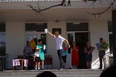 Кожен першокласник (кожен!) розповів невеличкий віршик. Я розумію, це селище міського типу, це можливо. Проте це цікаво та приємно, погодьтесь. Потім випускники подарували найменшим учням символічні подарунки.