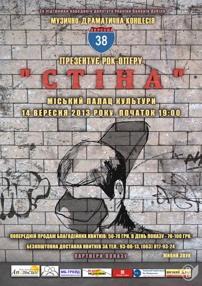 Я побачив у Pinkу перш за все самого себе. Бо я теж такий собі Pink. Набудував власних Стін, понатворював Масок у своєму житті. І так, напевно, чи не кожний глядач побачив себе самого(саму) на сцені Чернігівського міського палацу культури суботнього вечора у виконанні Музично-драматичної концесії "Персона 38" рок-опери "Стіна" ("The Wall") англійського гурту Pink Floyd.