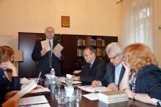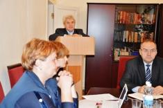 Передаючи слово заступнику директора з наукових питань УІНП, доктору історичних наук, професору Дмитру Вєдєнєєву, В. Кривошея наголосив на особливій важливості піднятої теми, адже проблема жертв примусової праці живе не тільки в площині виплати компенсацій, але насамперед в просторі відновлення пам’яті, відновлення справедливості.