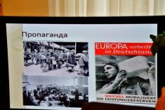 Доктор історичних наук, професор, провідний науковий співробітник відділу теоретичних і прикладних проблем національної пам’яті УІНП Сергій Лепявко представив фотокартки, куплені чернігівським краєзнавцем Дмитром Сілічем на німецькому аукціоні, які належали Йогану Клебшу, начальнику німецької поліції у Чернігові, та відображали фотозвіт про відправлення у квітні 1942 р. остарбайтерів з Чернігова до Німеччини.