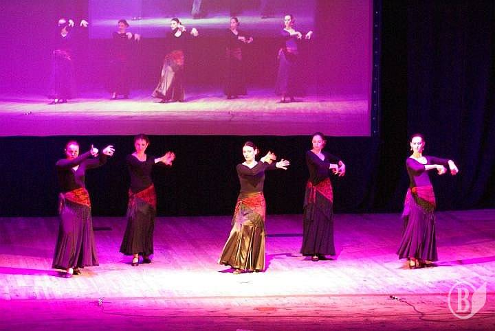 Программа состояла из тридцати двух танцевальных номеров, которые исполнили как местные коллективы, так и гости из Нежина, Киева, Днепропетровска, Одессы, Харькова и даже Минска. В этот вечер было много фламенко. Очень много. На какой-то миг мне показалось, что я попал на фестиваль где-нибудь в Севилье. К счастью, впечатление вполне разбавлялось кубинскими, балканскими и вообще восточными мотивами.