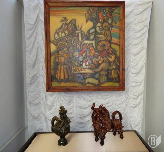 Його ілюстрації відзначаються винятковою майстерністю, поетичністю, знанням етнографії і, звичайно, народним гумором. Водночас з ілюстраціями створювалась низка самостійних живописних робіт за літературними творами, пов’язаних спільністю мотивів, характерних персонажів, як от «Солоха», представлена на виставці.