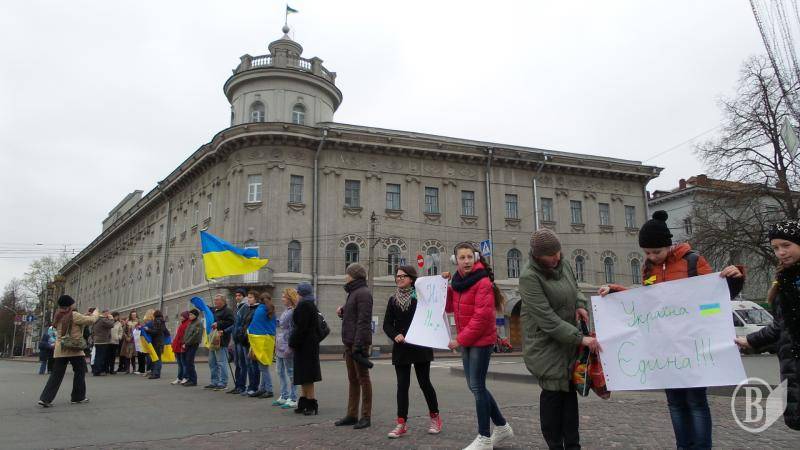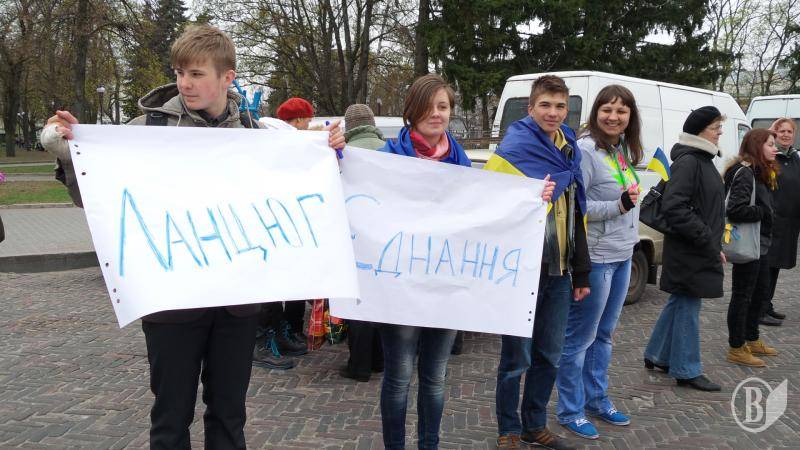 Сьогодні, 12 квітня на Красній площі містяни приєднались до загальноукраїнської акції Ланцюг Єднання.