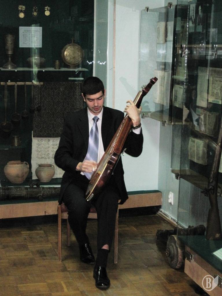 Особливий антураж епохи створювали твори Тараса Григоровича, які лунали під акомпанемент бандури у виконанні студента 4 курсу Музичного училища імені Л. Ревуцького Дмитра Хропатого.