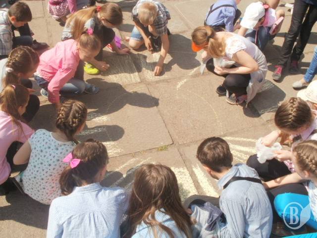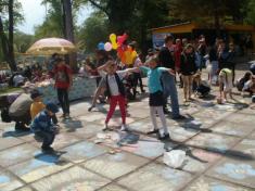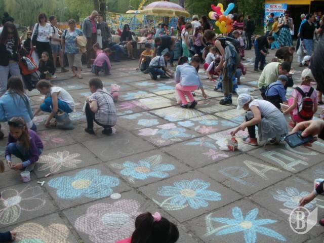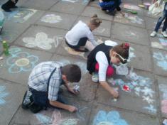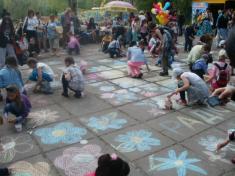 Сонцем та квітами асфальт парку культури прикрасили вихованці міської дитячої художньої школи.