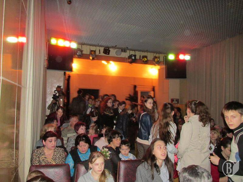 Довелося працівникам театру шукати додаткові стільці. Глядачі сиділи навіть на дерев’яних лавах.