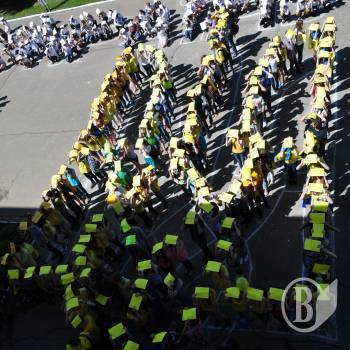 На большом перерыве, в уютном дворике школы появилась инсталляция Государственного Флага Украины, Государственного Герба Украины, и надпись «Я люблю Украину». Инсталляции были образованы из учеников пятых – десятых классов.