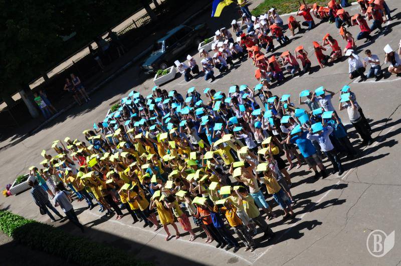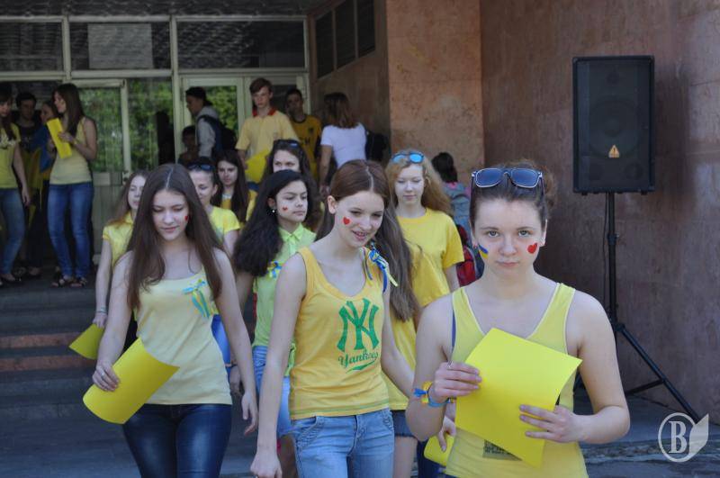 В конце флеш-моба ученики и учителя запели Государственный Гимн Украины»