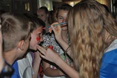 В фойе волонтеры разрисовывали ученикам щечки и руки в национальные цвета, нарисовали стендовые газеты на патриотическую тематику.