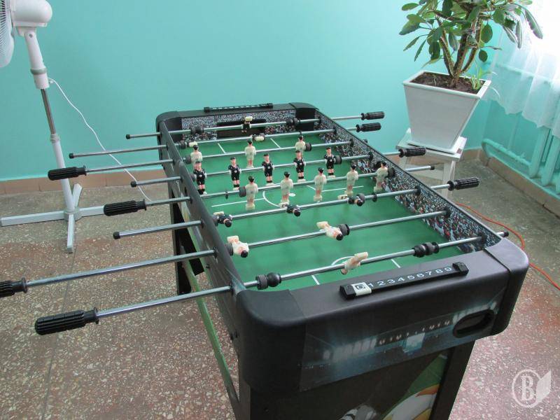 Представник благодійного фонду «Європа» передав дітям гру настільний футбол.