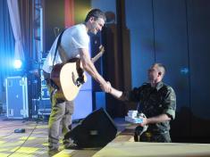 В память о посещениях городка артистам подарили банки с «военной тушонкой», флягу и производный котелок. А напоследок Арсен Мирзоян импровизированно исполнил песню-гимн поселка Гончаровского, текст которого торжественно презентовали артистам. После концерта все желающие имели возможность пообщаться с артистами и сфотографироваться на память.