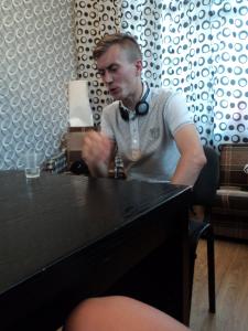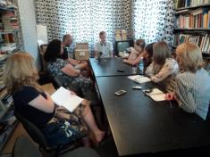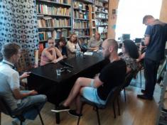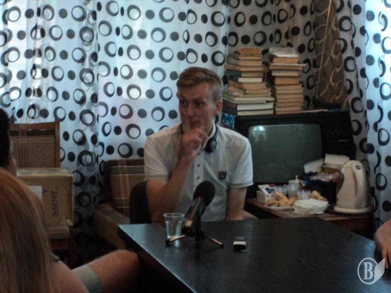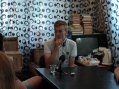 У дуже теплій і невимушеній атмосфері молодий актор поділився з учасниками зустрічі історіями зі свого театрального життя, професійним досвідом і навіть привідкрив сторінки особистої біографії. Головна тема розмови все ж таки стосувалась особливостей сучасного театру та сучасних акторів.