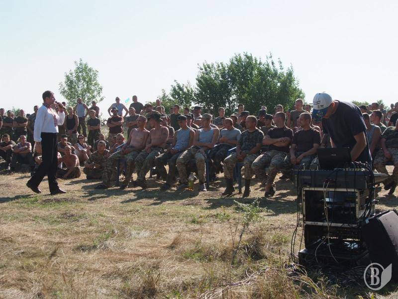 Следующее мероприятие состоялось уже возле Краматорска в Донецкой области. Здесь музыканты военно-музыкального центра дали первый в своей жизни концерт в настоящих боевых условиях, ведь где-то неподалеку постоянно раздавались автоматные и пулеметные выстрелы.