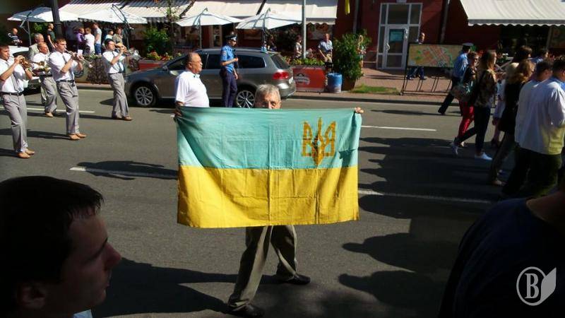 На схилах було розгорнуто прапор України. До речі, Свято-Катерининська козацька церква є кафедральним собором Української православної церкви Київського патріархату.