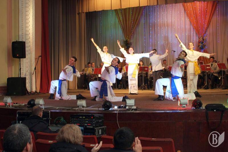 Так, військовий оркестр, балет та солісти центру в районному будинку культури виконували перед місцевими мешканцями українські пісні і народні танці.