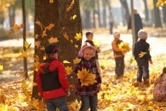 Дівчатка роблять із листя корони на голову і фотографують. Їм можна - вони королеви.