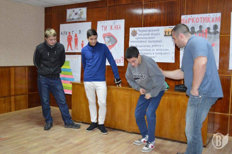 Заступник начальника Чернігівського відділу КВІ Юлія Василенко та Алла Лепеха розповіли молоді про ті небезпеки, що несуть алкоголь, тютюнопаління, а особливо наркоманія. Алла Григорівна Лепеха розповіла про свою діяльність, про місця позбавлення волі та людей, чиї долі були зламані протиправною поведінкою.