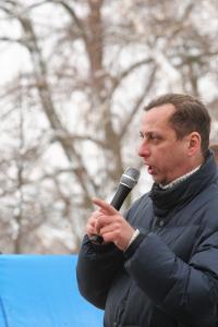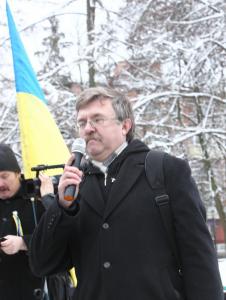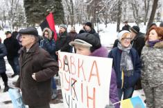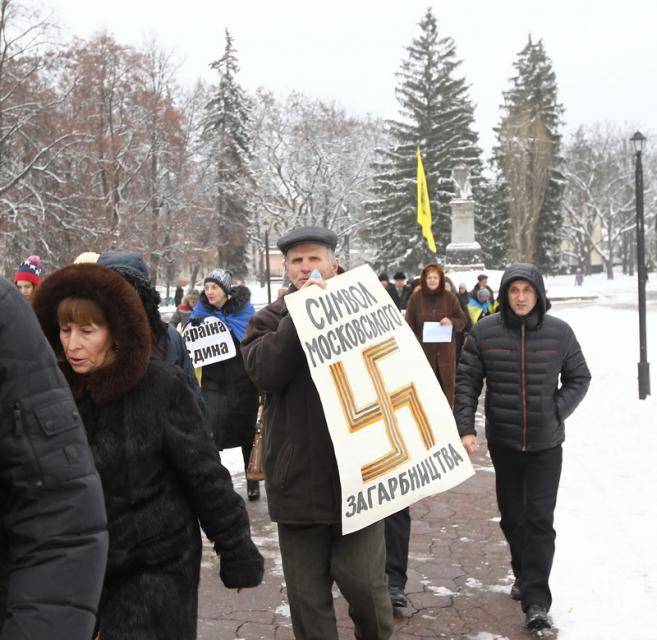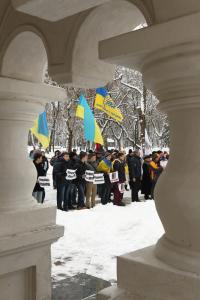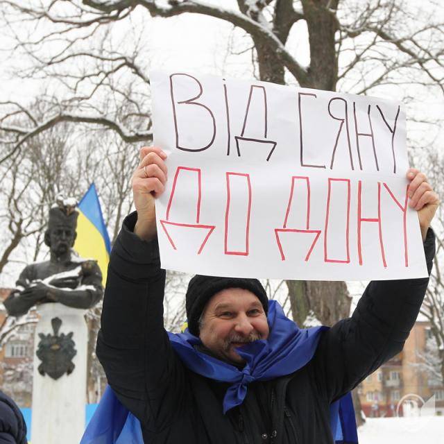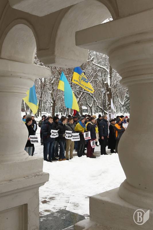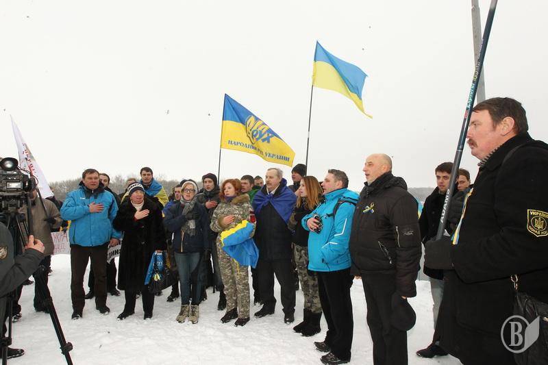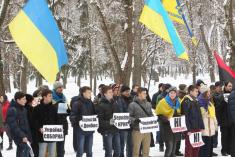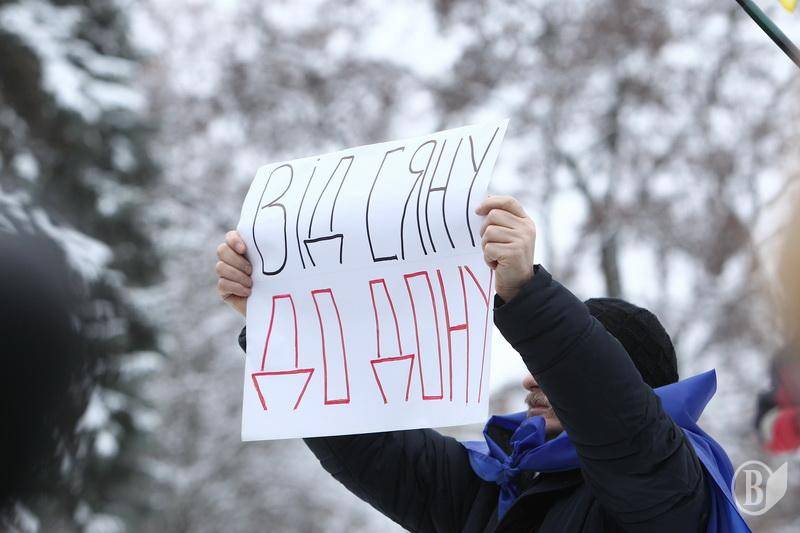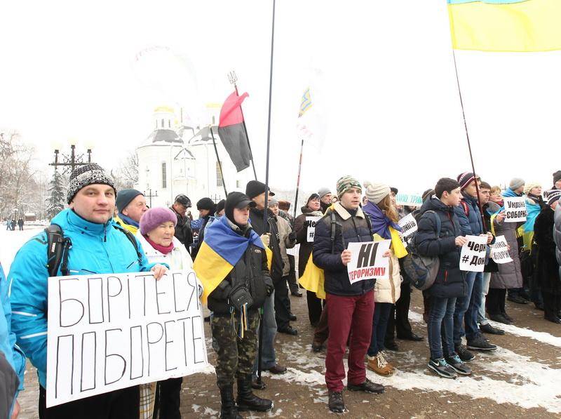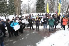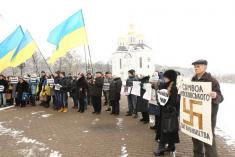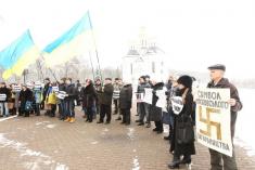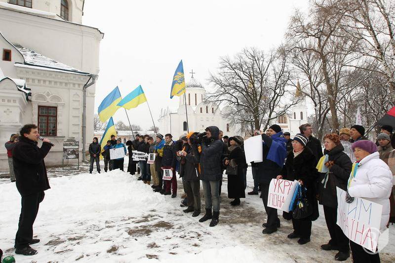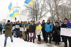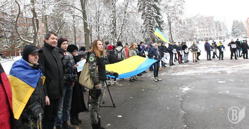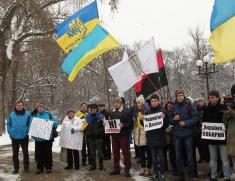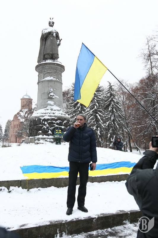 Поблизу пам’ятника Богдану Хмельницькому до невеличкої групи патріотів приєдналось ще кілька десятків чоловік.