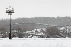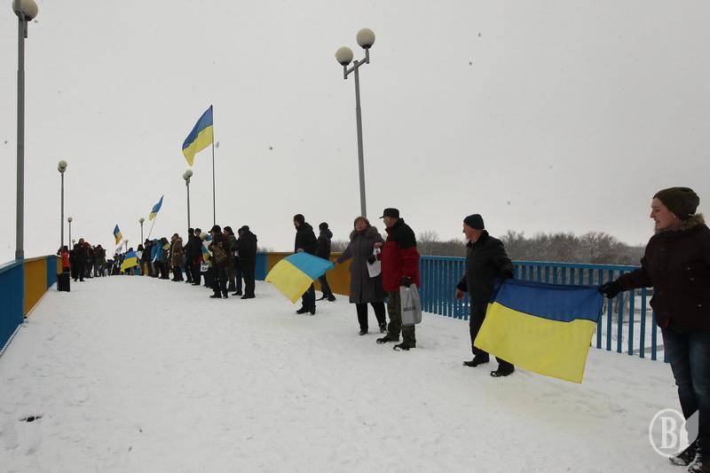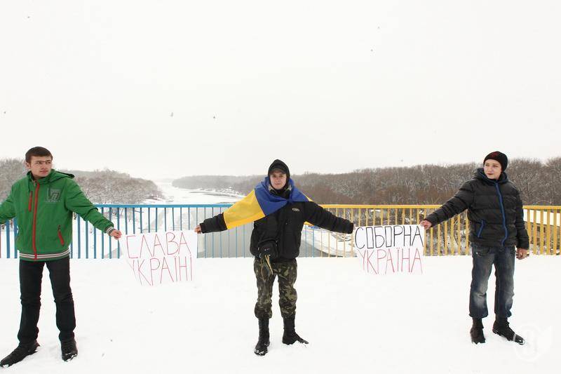 Потім хода вирішила на патріотичний пішохідний міст. Там чернігівці провели флешмоб «Від Сяну до Дону». Вони вишукувалися у живий ланцюг з берега до берега, що символізує Соборність і неподільність України.