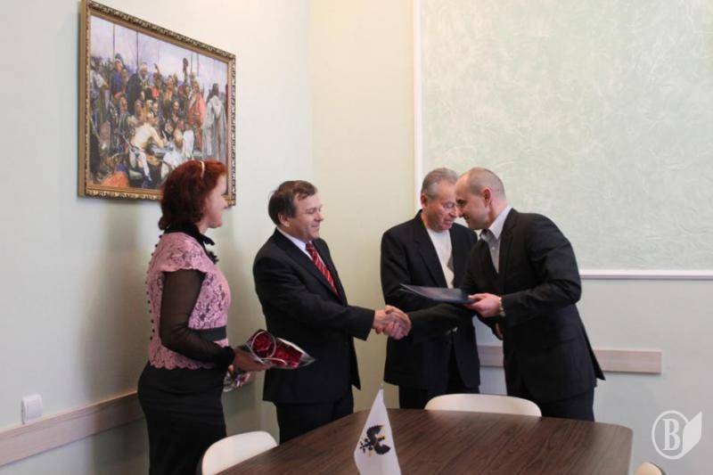 Секретар міськради Владислав Кухар вручив Почесні грамоти міської ради та виконавчого комітету директору обласного Центру медико-соціальної реабілітації дітей-інвалідів «Відродження» Василю Пасічнику та голові Чернігівської християнської місії «Милосердя та духовне відродження» Петру Бевзу.