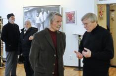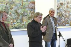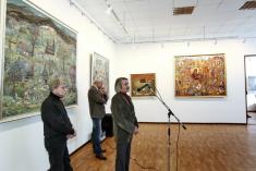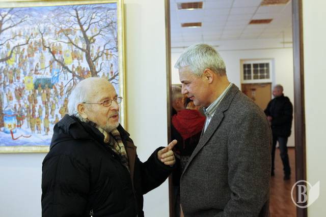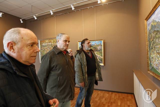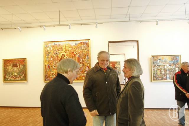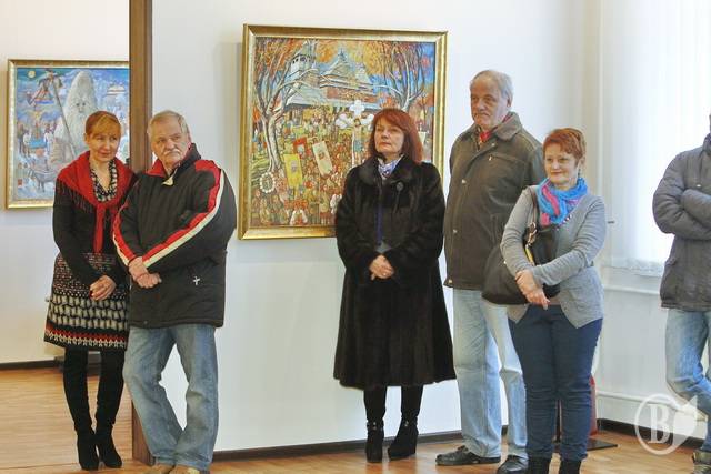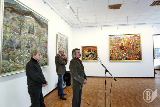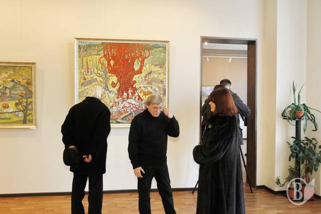 Тут сьогодні вперше за роки існування спілки відкрилася художня виставка робіт Тараса Данилича.
