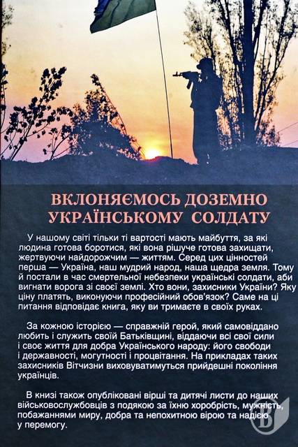 «Вклоняємось доземно українському солдату» - таку назву має книжка, презентована сьогодні у Чернігові, в обласній бібліотеці імені Короленка.