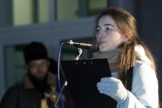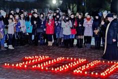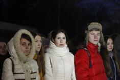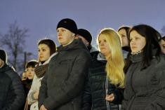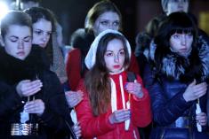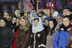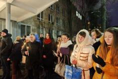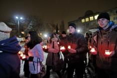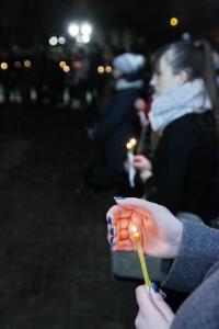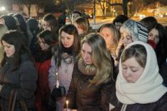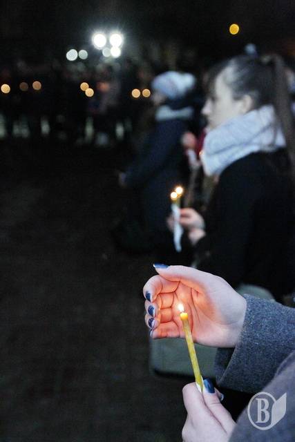 Довкола стояла тиша, потріскував вогонь у запалених лампадок та свічках, які тримають учасники акції. Священнослужителі правили молебень…