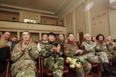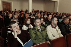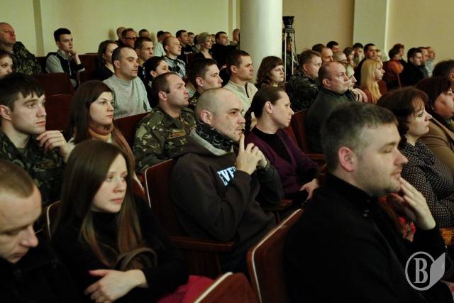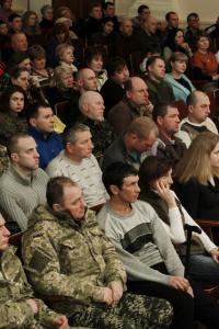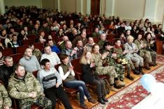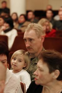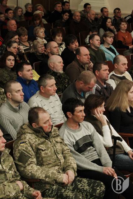 Зрештою, концерт пройшов у доволі теплій і, так би мовити, родинній атмосфері. Бійці жартували: лікуючи рани фізичні не треба забувати і про моральні. А на завершення і військові і концертний батальйон виконали гімн України.