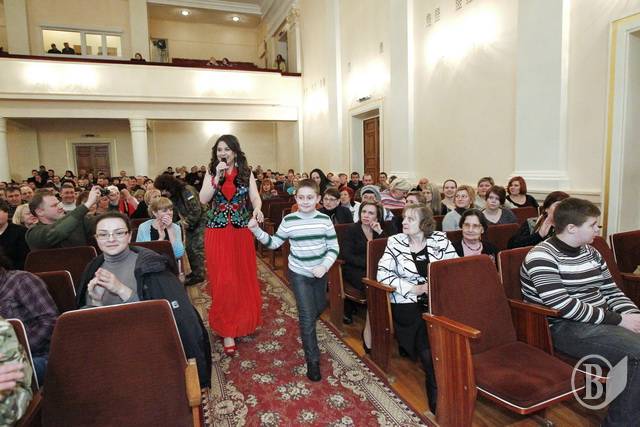 Вчора в Філармонійному центрі зірки вітчизняного шоу-бізнесу, серед яких Анжеліка Рудницька і сестри Тельнюк, виступили для бійців, які лікуються у Чернігівському військовому госпіталі.