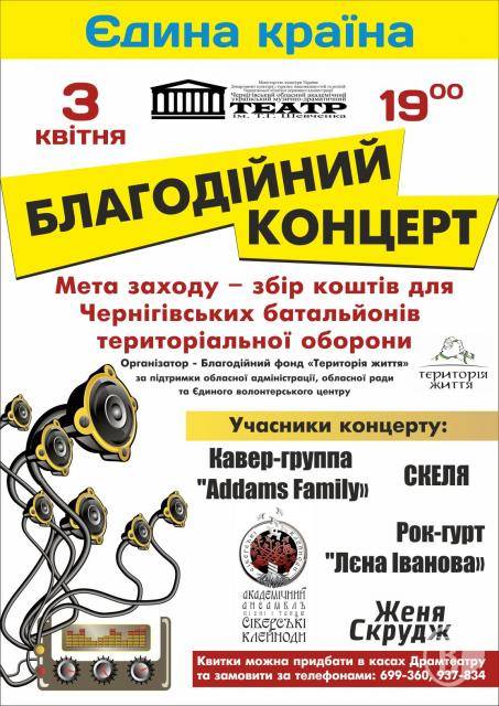 Благодійний концерт «Єдина Україна» відбудеться в Чернігові