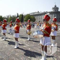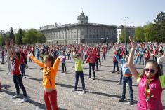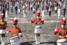 На Красну площу вийшли одночасно близько 2000 дітей віком від 5 до 18 років, які дуже гарно, натхененно й синхронно затанцювали під пісню "Я, ти, він, вона, разом - ціла країна!"